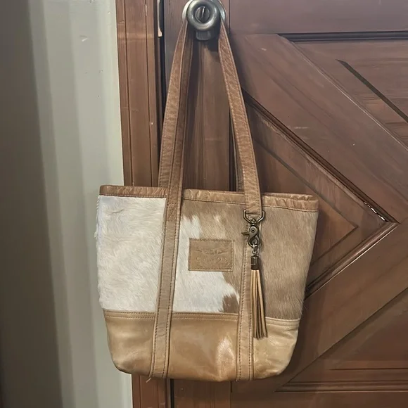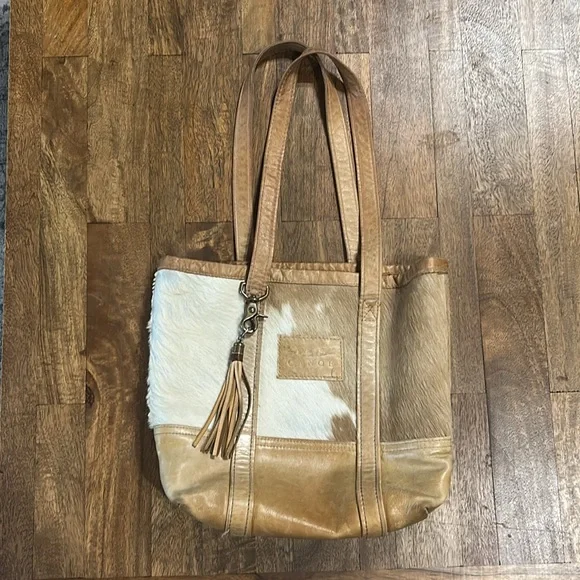Gently use condition Wear to leather some rubbing of cowhide 15" tall x 16" long x 5" wideTassel detail on handle Leather is really soft