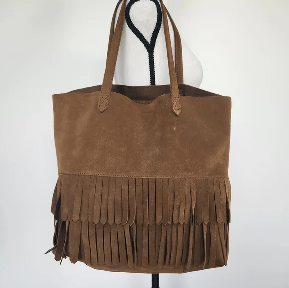 Madewell Transport Tote Bag Purse Fringe Suede Leather Boho Hippie 70s Vibe