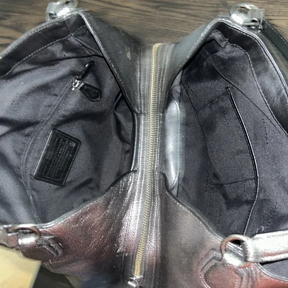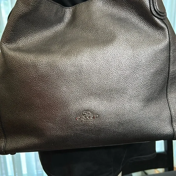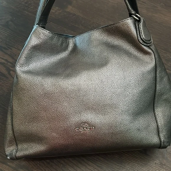 Edie Shoulder Bag 28 Metallic Pebble Leather. Beautiful metallic bag! There is some wear on the front and corners as pictured. Gorgeous and unique bag that will not disappoint