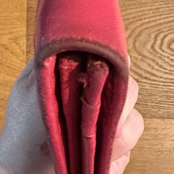 Used condition worn edges, and coin purse has residue.