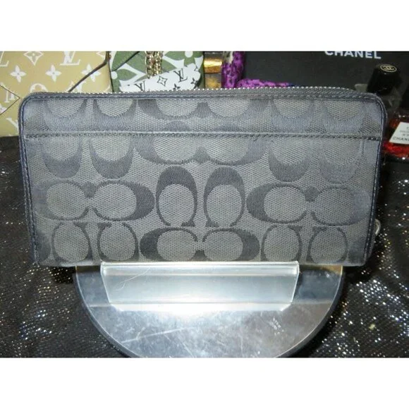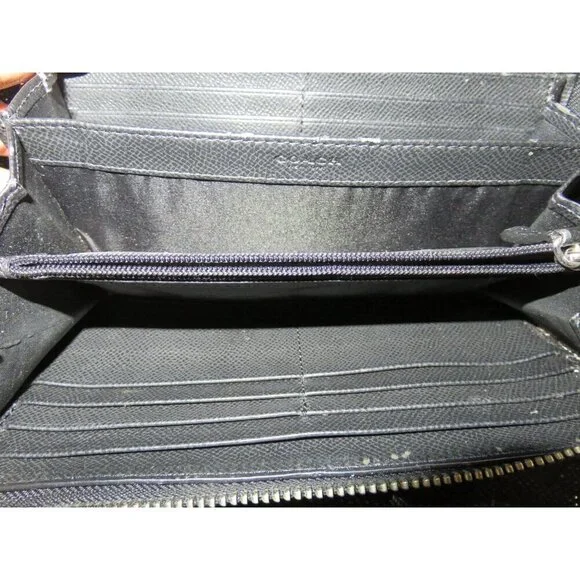 Coach Black Signature C Logo Zip Around Accordion Continental Long Wallet/There are 12 card slots and an interior zipper coin compartment.used but cared forAll used bags/wallets/shoes may have the following✔️Discoloration✔️Signs of use✔️Scratches scuffing✔️rubs✔️Pls check the pictures closely as they are part of the description.