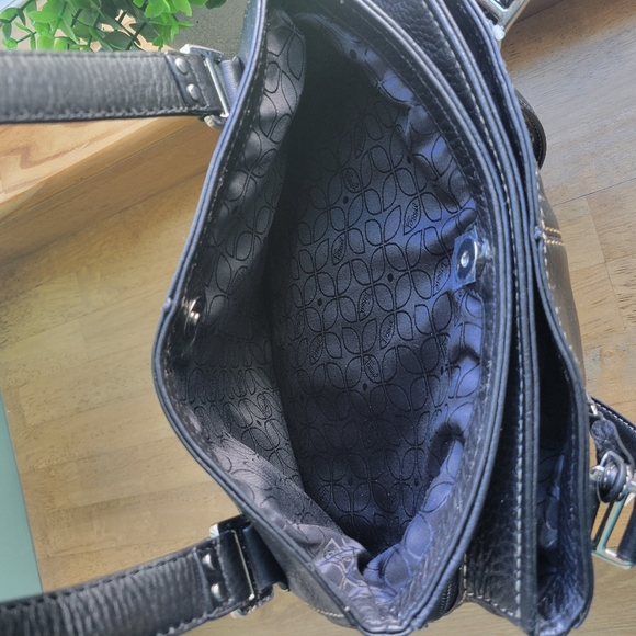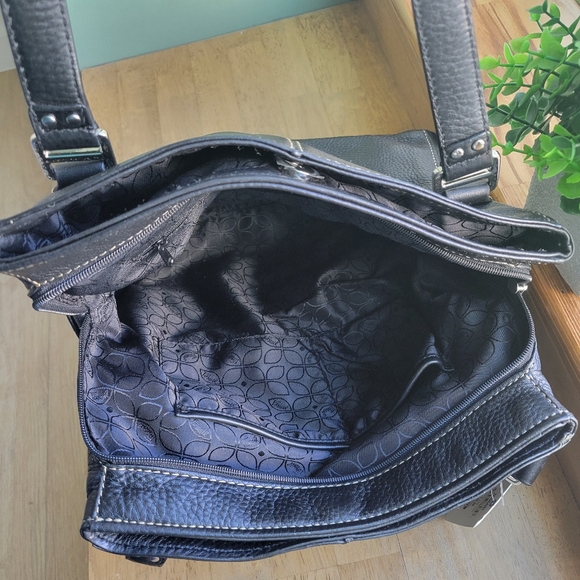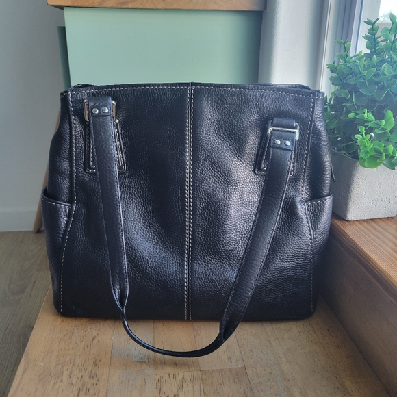 Soft pebbled black leatherSilver hardwareDouble handles 10"handle dropOne main zippered compartmentTwo magnetic closure compartmentsMeasures approximately 12.5" x 5.5" x 11"I ❤️ the fur babies, but I am a pet free and smoke-free home.