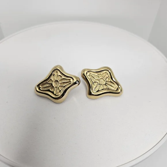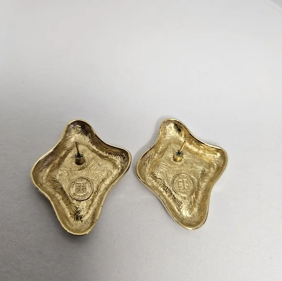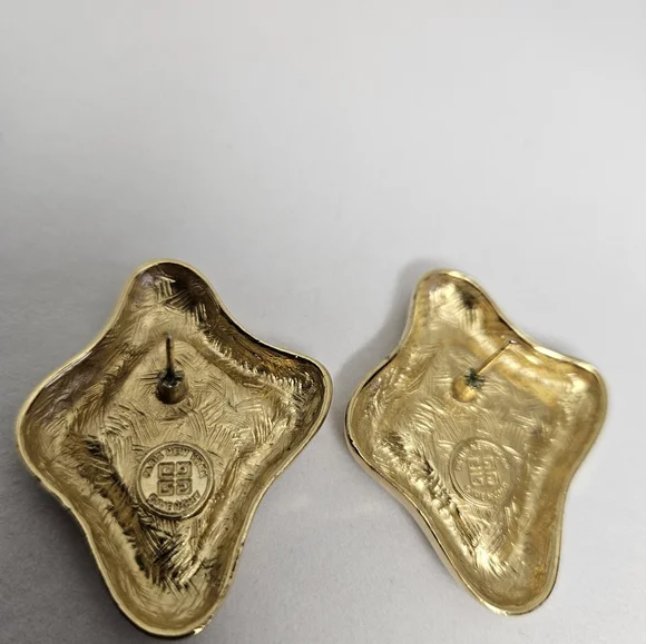 Gorgeous Givenchy gold-plated Modernist clip back earrings Signed, "Givenchy, Paris, New York1980Country of Origin FranceVintageGold Color Great Vintage Condition