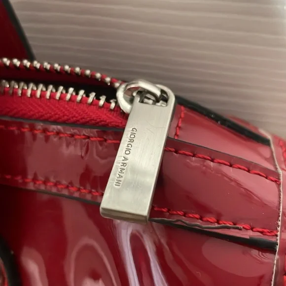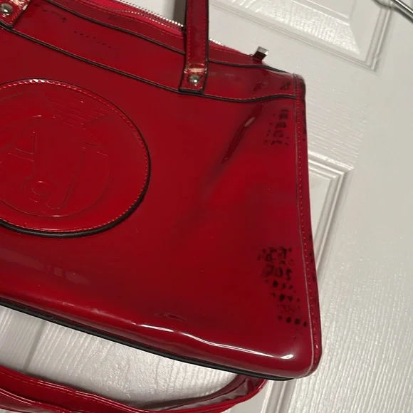 Vintage Giorgio Armani Jeans Patent leather handbag has marks and wear