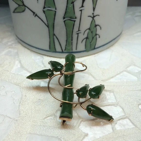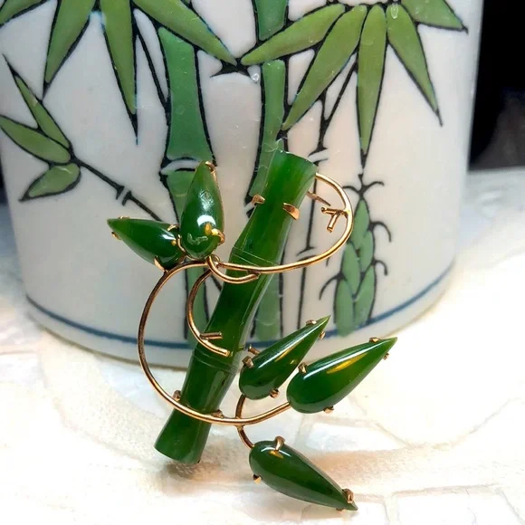 VNTG 14k gold nephrite bamboo brooch9.4gReally interesting looks like real bambooGood condition