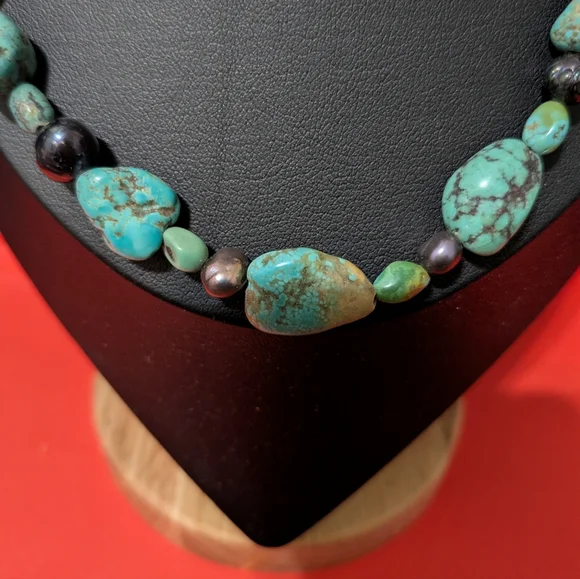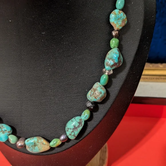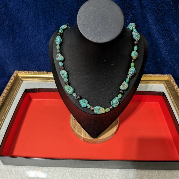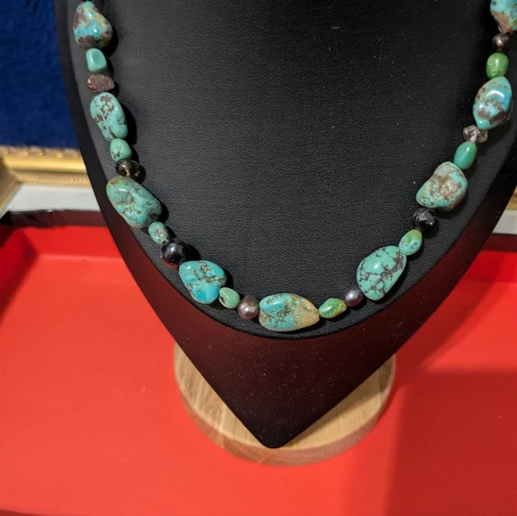 Jade Necklace 24 Inch irregular cut stones on silver.