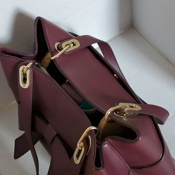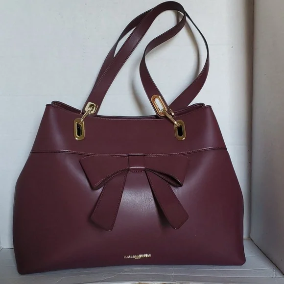 Karl Lagerfeld Paris Katie Shoulder Bag Merlot Satchel Tote Purse Handbag Vegan Leather Bow 1 exterior pocket3 interior divided pockets WOMEN´S WOMAN´SMeasurements...