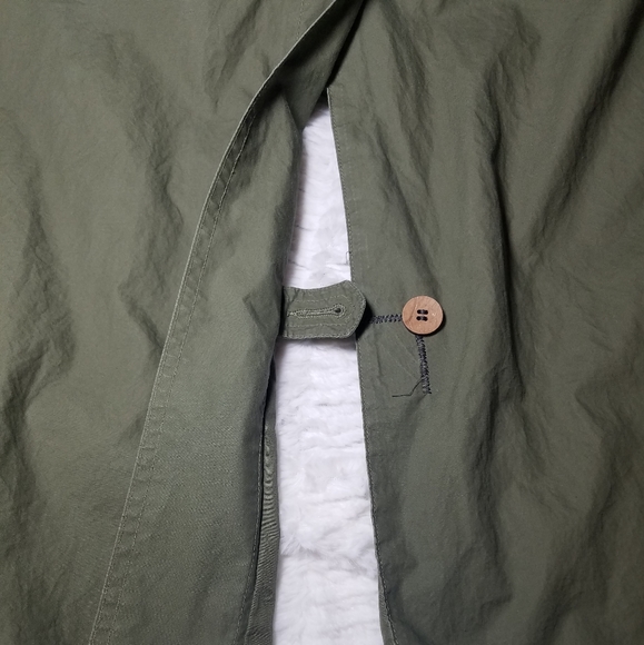 Good used condition jacket by Eddie Bauer.I love this oversized style.Has 4 outer pockets and 1 interior pocket.There is a small rip near the elbow of the right sleeve.You can...