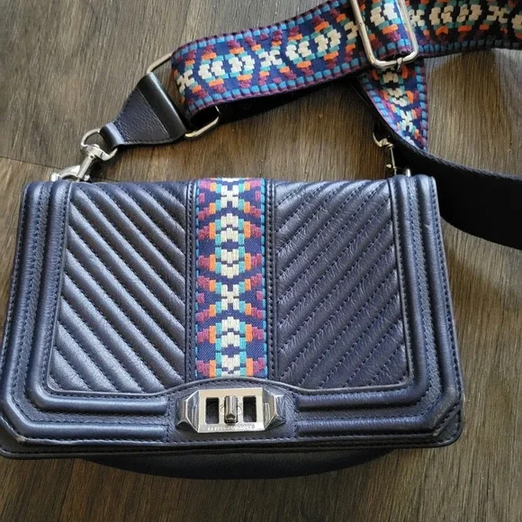 REBECCA MINKOFF Jacquard Love Crossbody With Guitar Strap In Navy