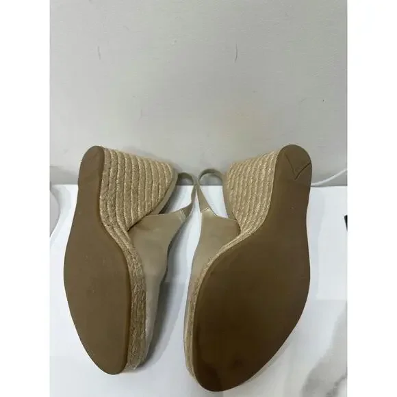 Brand: PradaSize: 39.5 (EU)Style: Satin Espadrille Wedge Slingback SandalsColor: Light BeigeMaterial: Satin upper, jute-wrapped wedge, and rubber outsoleCondition: Good (minor signs of wear, visible on soles and footbed)Features:Peep-toe designAdjustable slingback strapComfortable jute-wrapped wedgePerfect for elevating your summer look with a touch of eleganceIdeal for casual and semi-formal occasions!No box or dustbag included.
