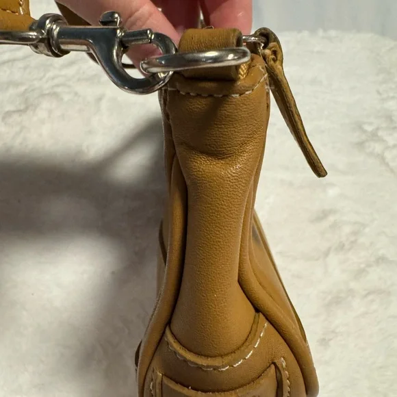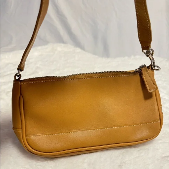 Coach Demi Hampton Mini Saddle Leather Tan Camel Y2K Shoulder Bag Purse Wristlet