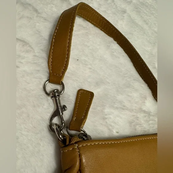 Coach 7785 Demi Hampton Women´s Saddle Tan/Light Camel color Leather Baguette Shoulder Y2K Bag Handbag. Can convert to a wristlet as shown in pics. Previously owned & in great condition. This is a great neutral color that goes with everything. Approx 9” x 4”.Smoke & pet free home. Bundle to save - I have lots of purses & wallets!Y2K, mini purse, mini bag, vintage coach, leather, neutral, classic, rare, Y2K, collectible Coach