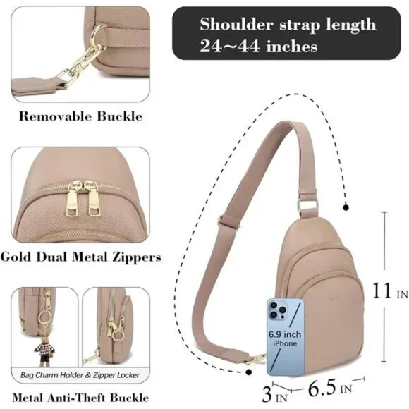 *【Product Size and Feature】SIZE: 7"(L) x11"(H) x 3"(W), Weight: 370g/0.8lb; INICAT crossbody bags for women with an ideal travel purse size that´s both sleek and portable,this fanny packs is perfect for minimalists who want a stylish, lightweight option for daily use or travel, freeing your hands wherever you go.*【3.5L Capacity for Essenticals】Small sling bag for women has two zip pockets, inside has CARD SLOTS design. Meaning you can store credit cards, keys, cash and other small items in the front pocket. As a travel bag, it has multiple passport holders.What´s more, this cute fanny packs for women allows you can put the cell phone in a big pocket to prevent it from dropping and easy to answer your phone when outdoor activity.*【RFID Blocking】The front zipper pocket of this rfid blocking bag has four card slots built inside, which are made of proprietary shielding materials. These card slots can effectively block RFID signals and protect your personal cards from unauthorized access. You can rest assured that your credit card information will be kept safe when you´re traveling or shopping.*【Anti-theft 】Crossbody sling bag Equipped with an anti-theft buckle, it prevents the items in your rfid travel purse from being easily stolen or dropped. The sliding D-ring design on the back allows for easy carrying.