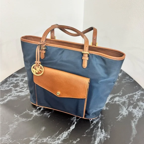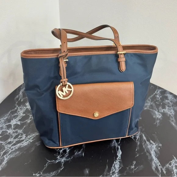 Michael kors Michael Jet Set Nylon Navy Blue Front Pocket Tote Bag AUTHENTIC
