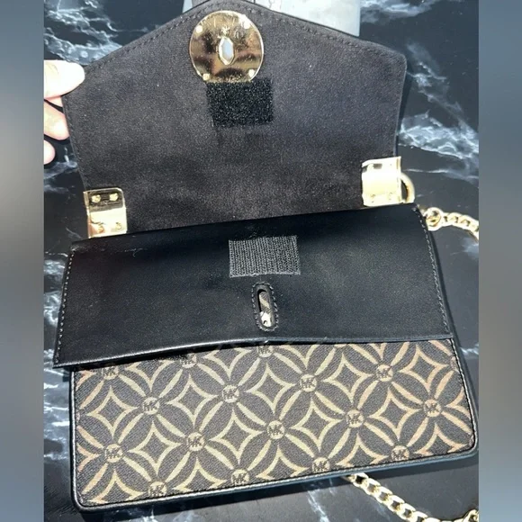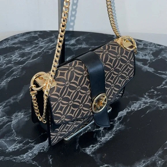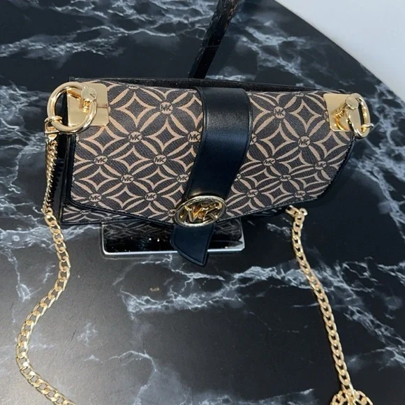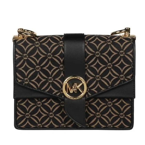 Michael Kors Handbag Women’s Greenwich Crossbody Black Gold Dressy Bag AUTHENTIC