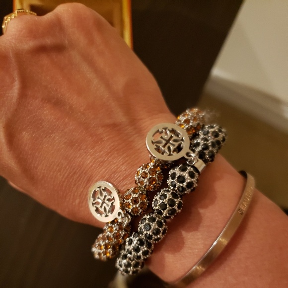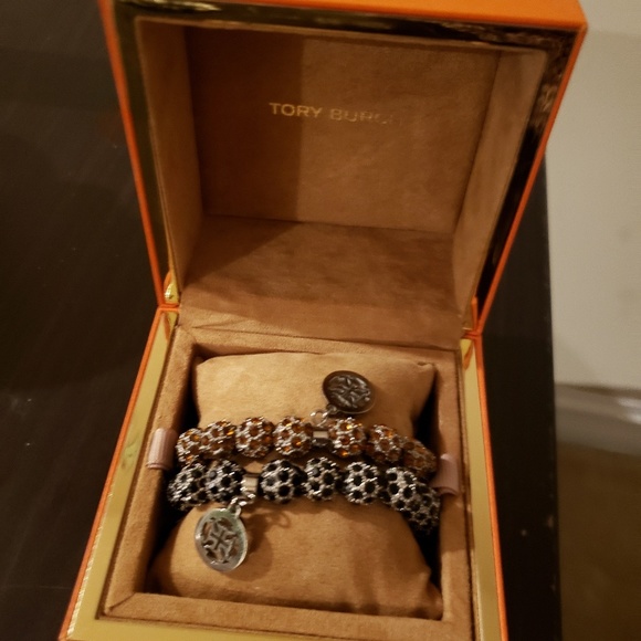 Never worn and brand new, set of twoTory Burch SET OF TWO (or one at half price)Elegant Amber and Onyx crystal braceletsALL genuine crystal balls SHINE THIS TORY AND YOU´RE SURE TO IMPRESS!
