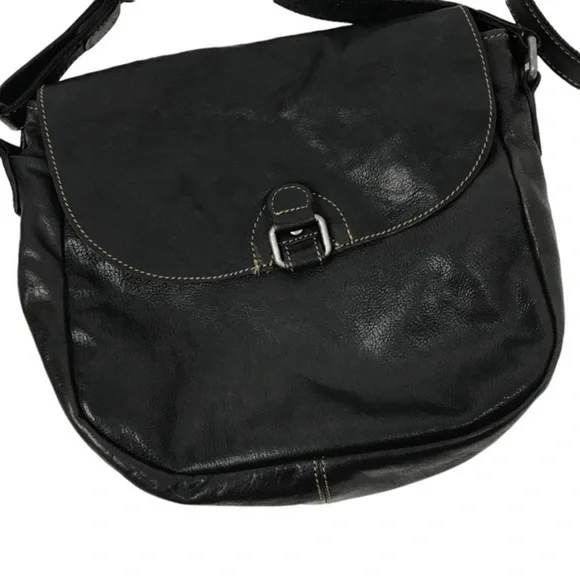 Jack Georges Crossbody Leather Unisex Flap Satchel Black Shoulder Bag12"L x 3"W x 9.5"HGreat used condition