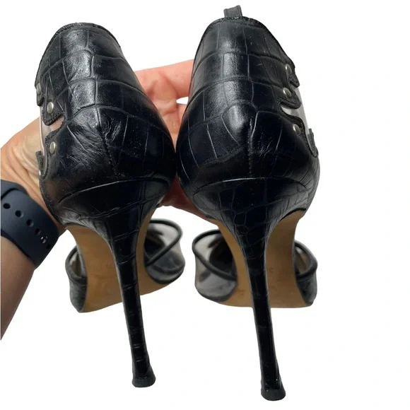 Versace90’s Vintage PVC & Croc Embossed Leather Studded Pumps 38.5