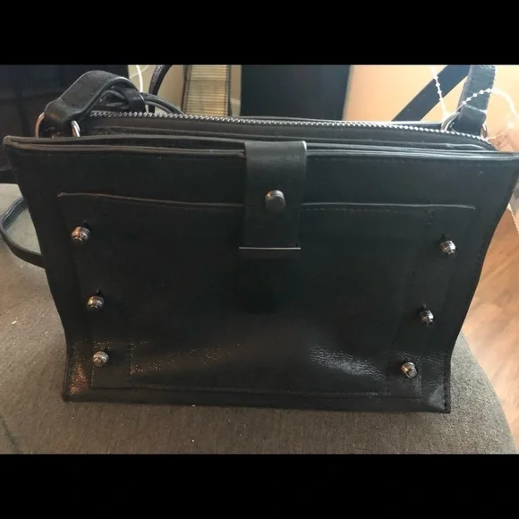 Adjustable crossbody strap. Zip closure; lined. Two exterior compartments with magnetic snap closures, interior slip pocket, interior zip pocket, two interior card slots. Strap...