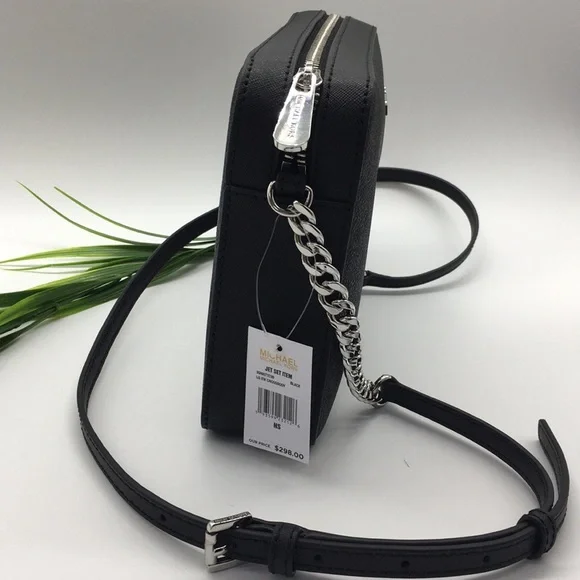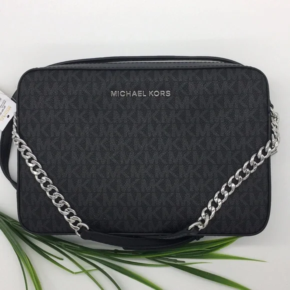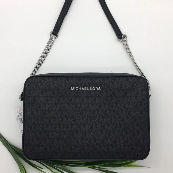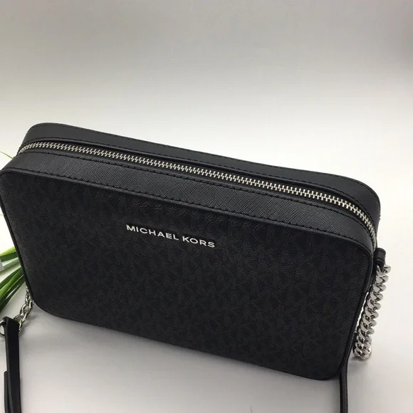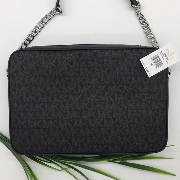 MICHAEL KORS LG EW CROSSBODY Bag Black. 35H9STTC3B . Brand New with tag 100% Authentic Black Leather /PVC with silver -tone hardware Measurements: 9.5"(L) X 6.5"(H) X 2.25"(D) Adjustable chain & leather strap with appx. 22" drop •Top zip closure •Interior 1 large padded pocket & 1 slip pocket MK logo lettering on front & interior MK signature fabric lining.