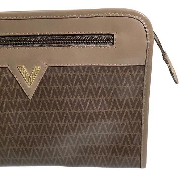 Mario Valentino Vintage Brown V-Pattern Clutch