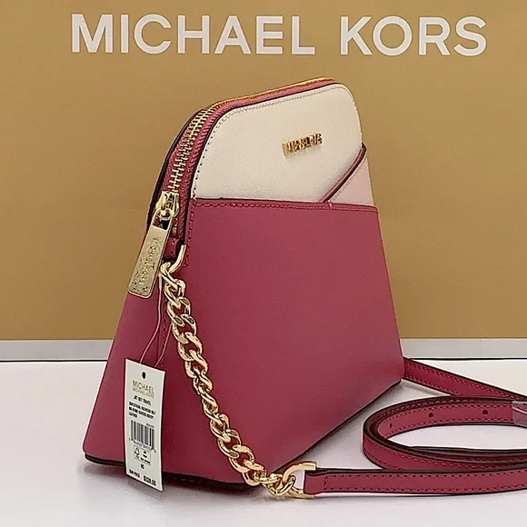MICHAEL KORS Jet Set Travel Medium Logo Dome Crossbody Bag Rosewood Mult…