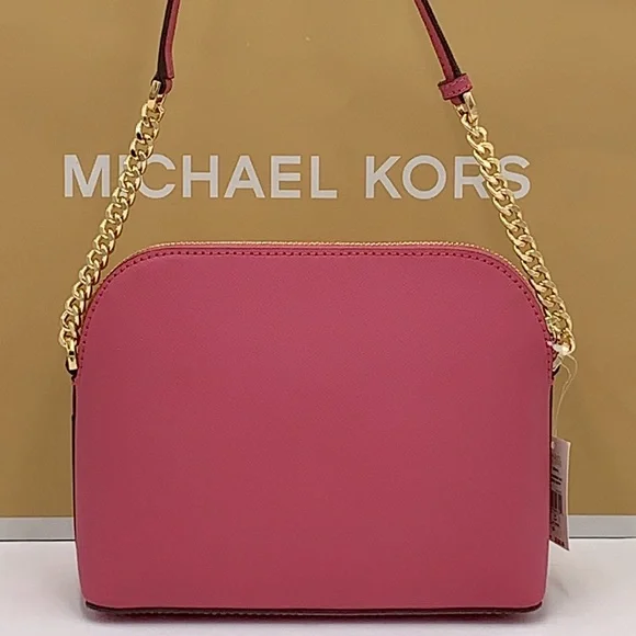 Rendered in a structured dome shape, it features an adjustable chain-trimmed strap and a convenient back slip pocket.DETAILS• Crossbody bag • 100% Saffiano Leather • Gold-tone hardware • 8.5”W X 6.75”H X 3.5”D • Exterior details: back slip pocket • Interior details: back zip pocket, front slip pocket • Lining: 100% polyester • Zip fastening • Dust bag not included • Imported