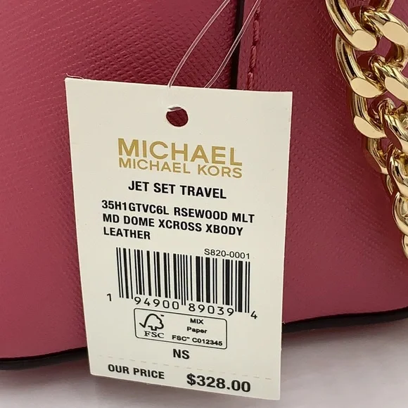 MICHAEL KORS Jet Set Travel Medium Logo Dome Crossbody Bag Rosewood Mult…