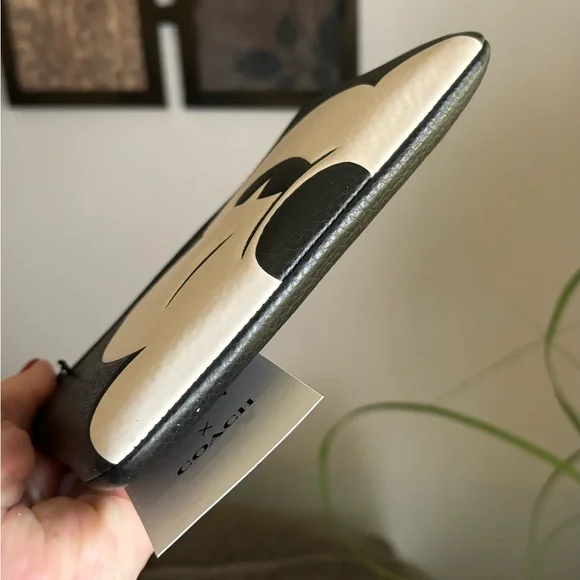 Authentic COACH Disney Wink Mickey leather zip around wristletNew with tags and care instructions in original packaging!❤️❤️L: 6.25"-H: 4.0"-W: 0.5"Refined pebble leatherFabric liningWrist strap attached 7"Zip-top closureTwo credit card slotsDisney x Coach/ ©Disney collection The bestselling Corner Zip Wristlet is just as great on its own as it is inside a larger bag. Finished with two handy card slots, it’s perfectly sized for your phone, keys and other small essentials.
