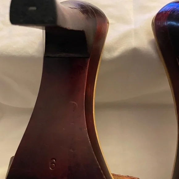 Elevate your style with these beautiful Calleen Cordero leather slide sandals. Crafted with a unique brass wood heel, these sandals are perfect for any occasion, whether it´s...