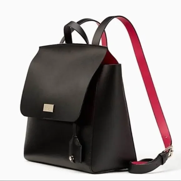 Kate Spade Quincy Leather Backpack Black/ Hotpink