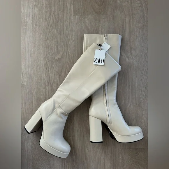 Zara leather boots platform heels high tops knee high