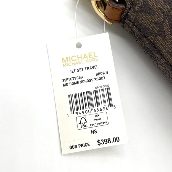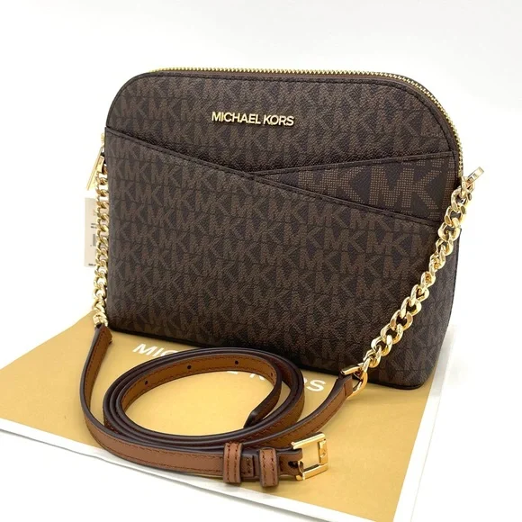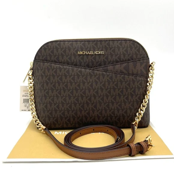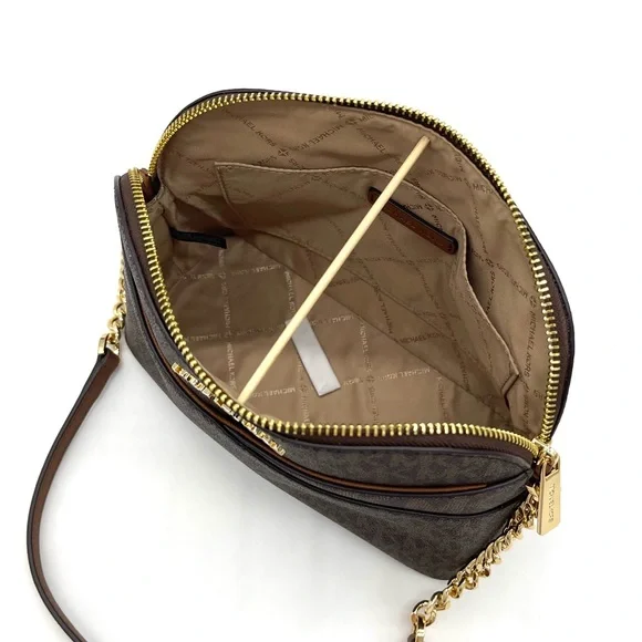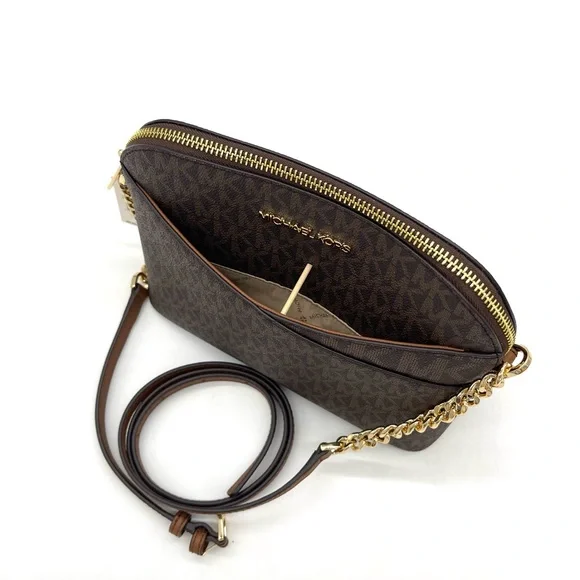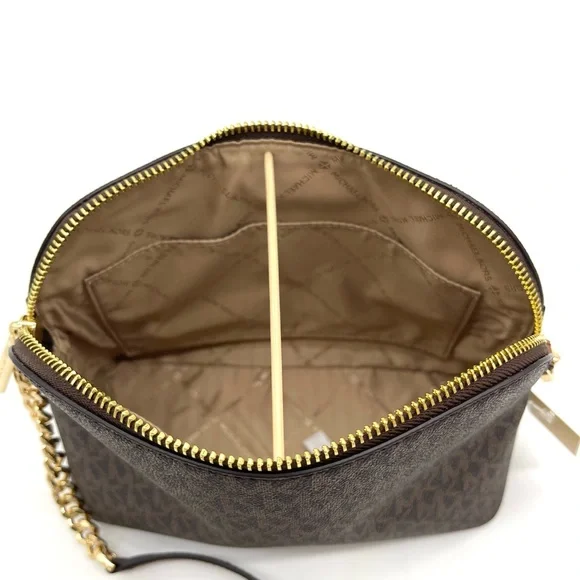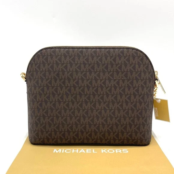 Brand New with TagMichael Kors Medium Dome Crossbody BagColor: BrownDETAILS• Crossbody bag• Logo-print canvas• 89.4% coated canvas/9.6% polyester /1% polyurethane• Gold -tone hardware• 8.5"W X 6.75"H X 3.5"D• Exterior details: back slip pocket• Interior details: back zip pocket, front slip pocket• Lining: 100% polyester• Zip fastening• Dust bag not included• Imported