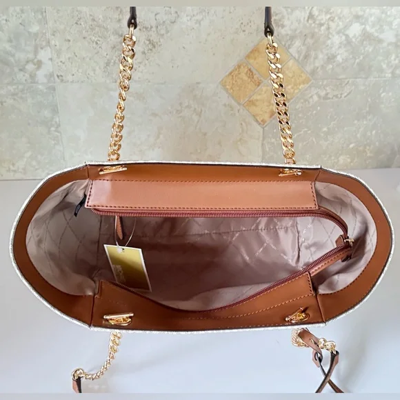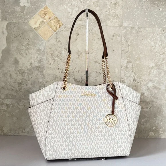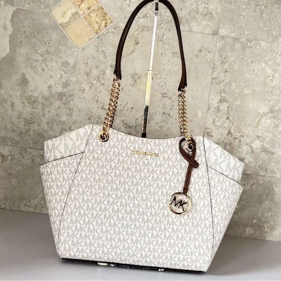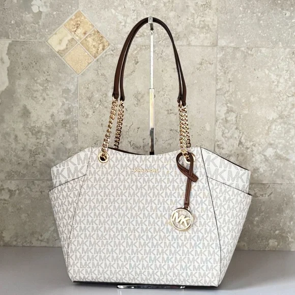 Michael Kors Jet Set Travel LG Chain Shoulder Tote Bag MK Vanilla