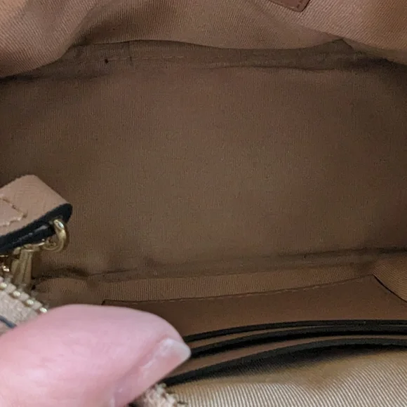NWOT tde. Structured Crossbody Bag - Taupe Beige can be used as a clutch or crossbodyremovable strap with 22" drop8.5 x 6interior zip pocket3 interior card slots4 metal feet - *minor scratches on feetdual zipper entry - no marks on zipper pullsall zippers work perfectly**no initials located anywhere