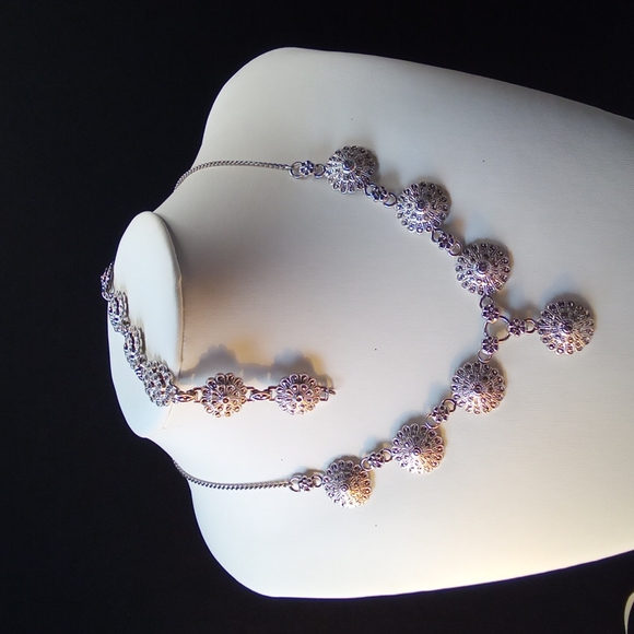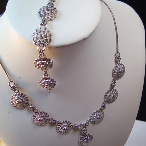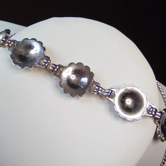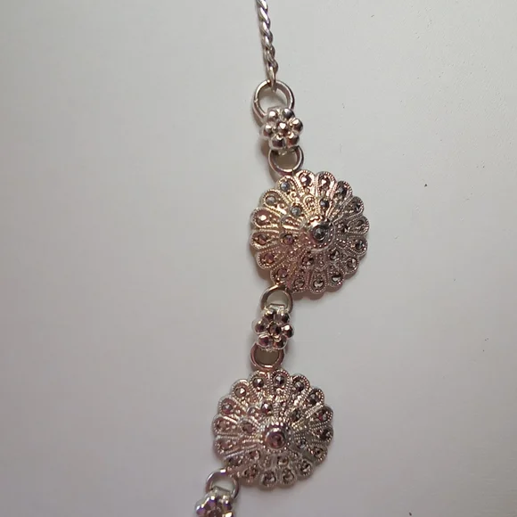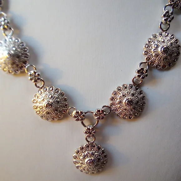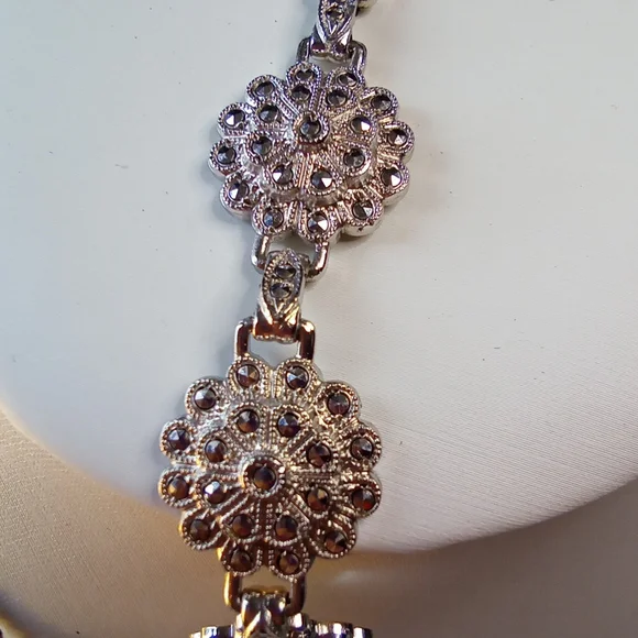 Listing is for a Marcasite Necklace and bracelet. They are marked Sterling, and it has the undeniable silver patina. in brand new condition. Please see video and photos for measurement and condition. No missing stones. Clean. can be sold separately.Please visit My Closet for vintage items, gems on silver, necklace sets, and bracelets made with Swarovski Xirius crystals on Brass or gunmetal. Thank you.
