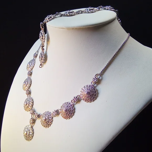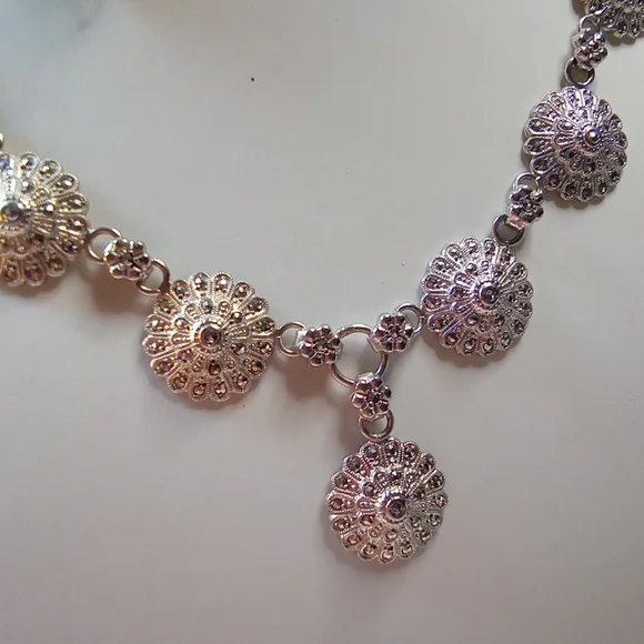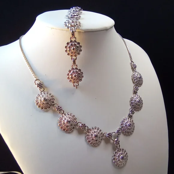 Marcasite Discs Necklace and Bracelet in Sterling Silver