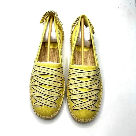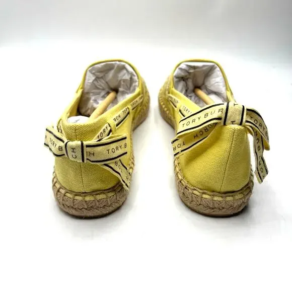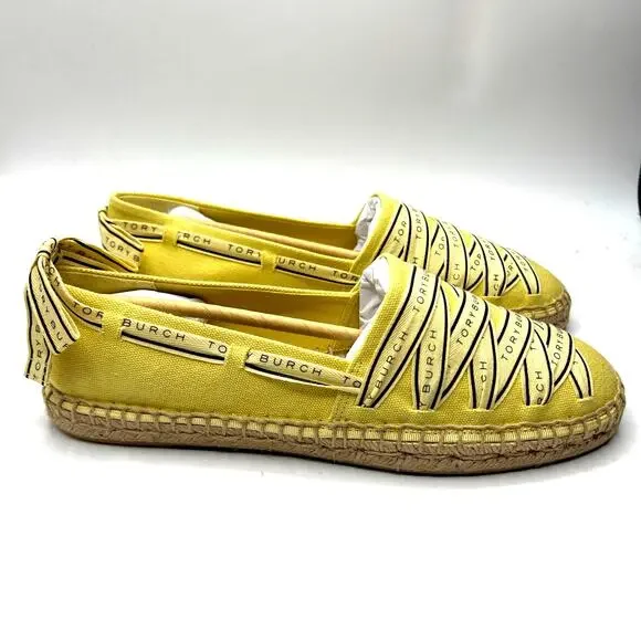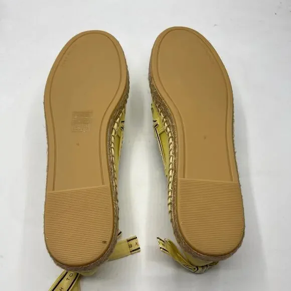 Tory Burch Tory Ribbon Espadrille Blonde Straw Dark Seaweed Yellow Size 9 NEW