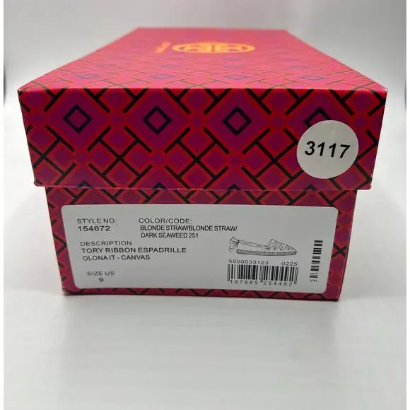 Tory Burch Tory Ribbon Espadrille Blonde Straw Dark Seaweed Yellow Size 9 NEWBrand : Tory Burch Style : Tory Ribbon Espadrille Olona IT - Canvas Color : Blonde Straw Size : 9Sku...