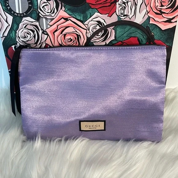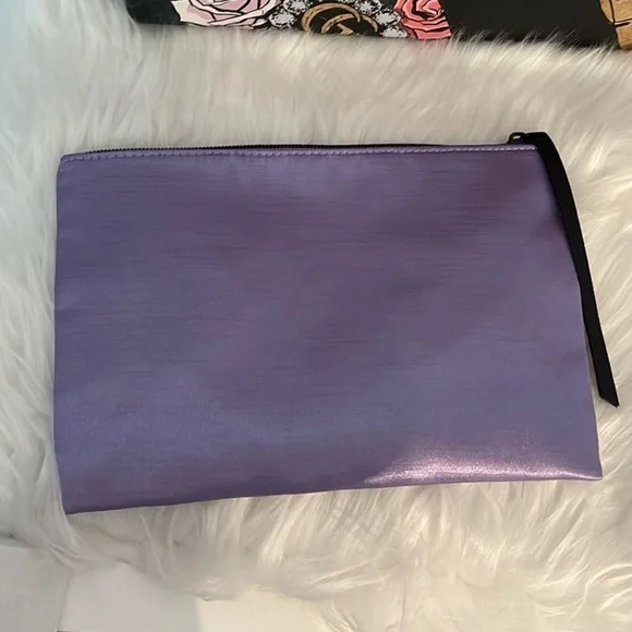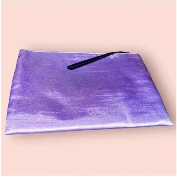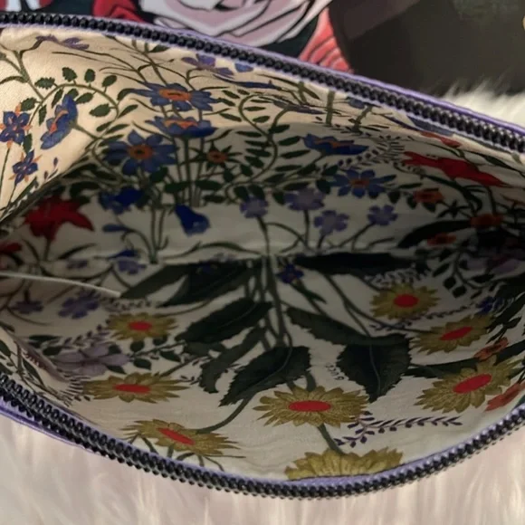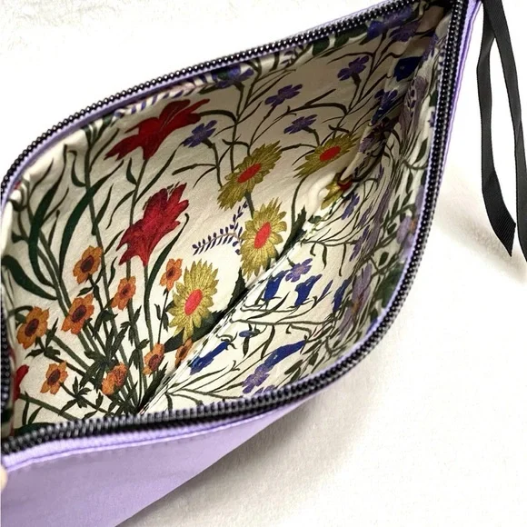 Lavender satin exteriorFloral Bloom interiorblack zipper with grossgrain ribbon pullNew, never used, without tagsapproximately 6" x 9"Please view all photos carefully as they are part of the description.Sold as is. No returns or refunds.Questions? Leave a comment below!