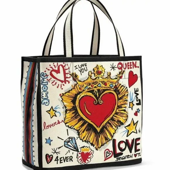 NWT Brighton "Queen of Love" Canvas Tote Bag, 8x13.5x15.25", Style #D30187, Artist - Tom Clancy, Retail $125. PLUSNWT Brighton "Love of Art" Canvas Pouch, 5.5x9", Style #D30186,Zip Top, Artist - Tom Clancy, Retail $30. Ships in Special Logo Box. Total Retail $155.