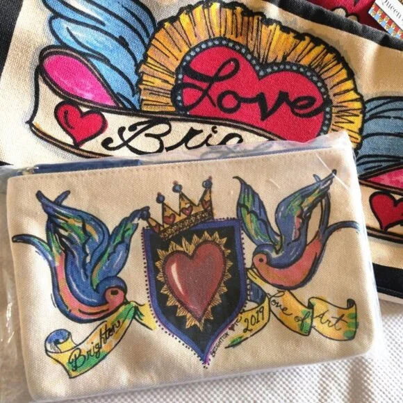 Brighton "Queen of Love" Canvas Tote Bag & "Love of Art" Pouch Bundle, NWT