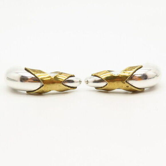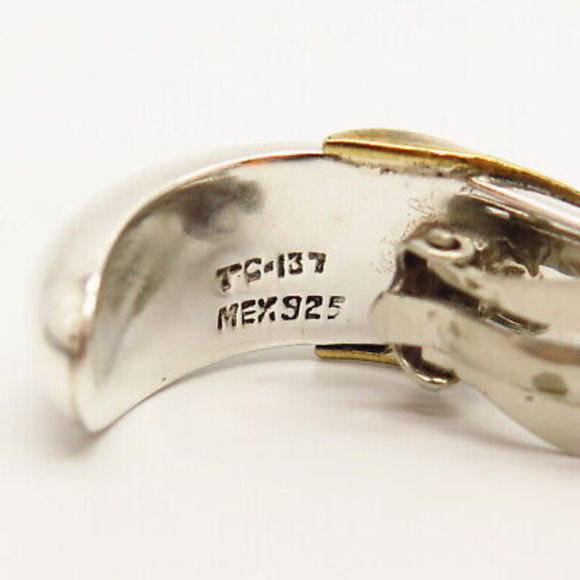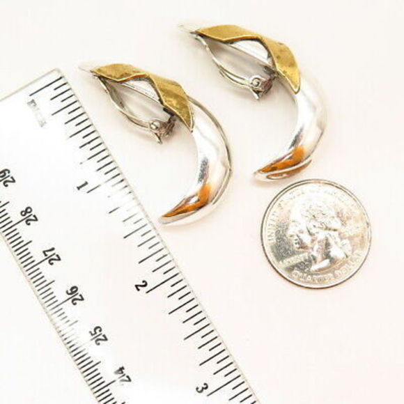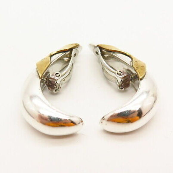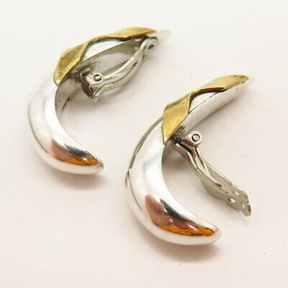 925 Sterling Silver 2-Tone Vintage Mexico Modernist Clip On Earrings