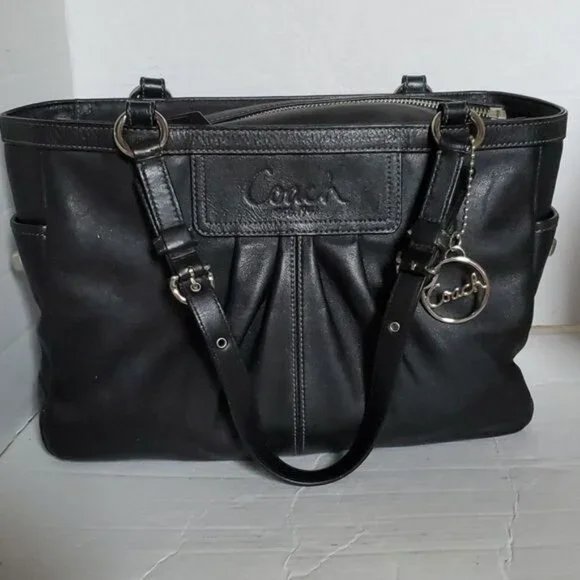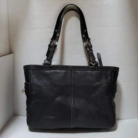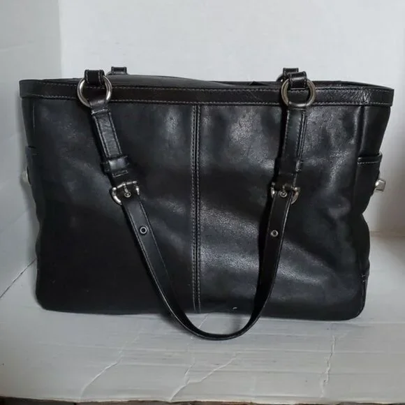 Coach F13759 Black Leather Shoulder Bag Handbag Tote Purse Style Name East West Gallery PleatedPen marks Interior WOMEN´S WOMAN´SMeasurements approximate Height 9"Length...