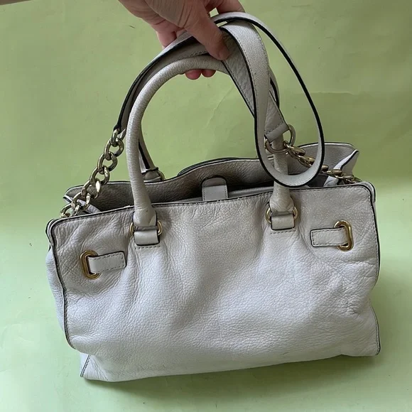 Vintage light gray/gold Michael Kors pebble leather large shoulder bag