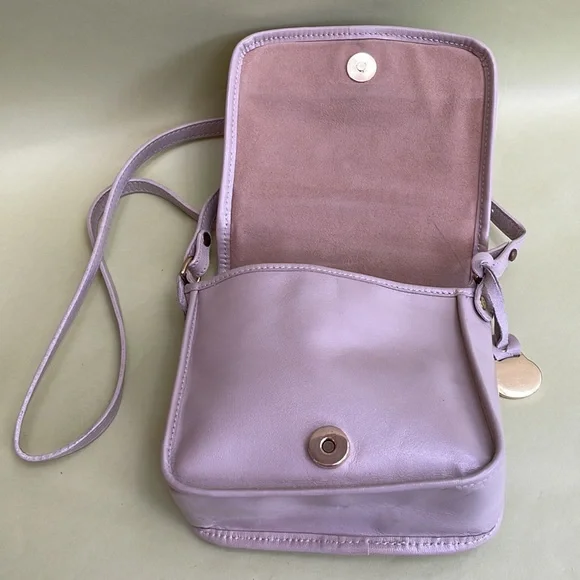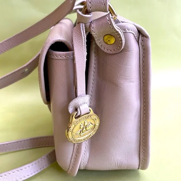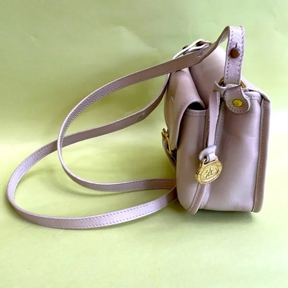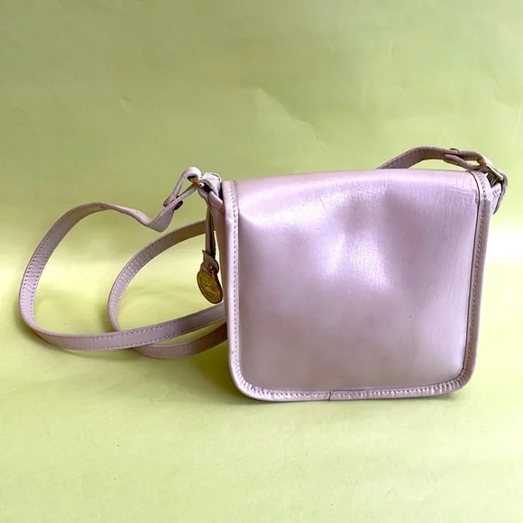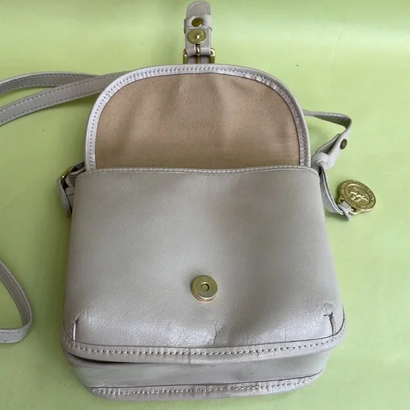 Absolutely adorable and unique Brahmin cream mini leather bag with two main compartments. Magnet closer. Excellent vintage condition (just couple ink marks inside). Beautiful leather and lining. Measurements 6”(L), 5”(H),2.5”(D). Length of the adjustable shoulder strap is 47” max