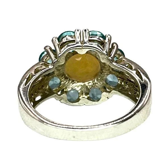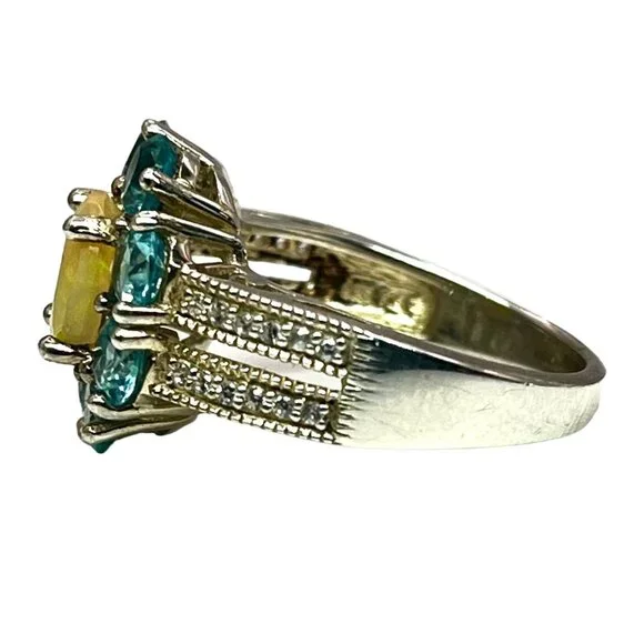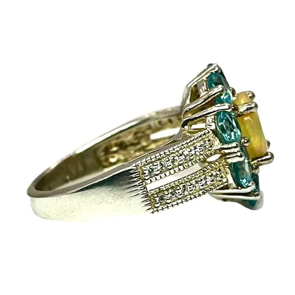 925 Sterling Silver Ethiopian Opal Blue Topaz Sz 8 Ring Flower Cocktail Ring