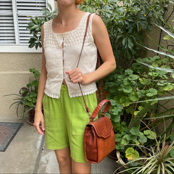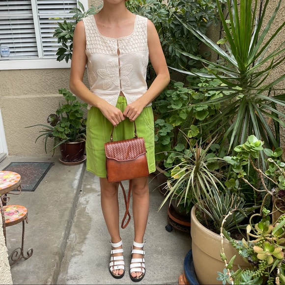 Absolutely adorable and unique vintage 80’s reddish brown Brahmin crossbody bag with exclusive decoration. Magnet closer. Great vintage condition. Some scratches. Clean inside. One main compartment. Measurements 8.5”(L) at the bottom,7”(L) at the top,7”(H),3”(D). Length of the adjustable shoulder strap is 47” max