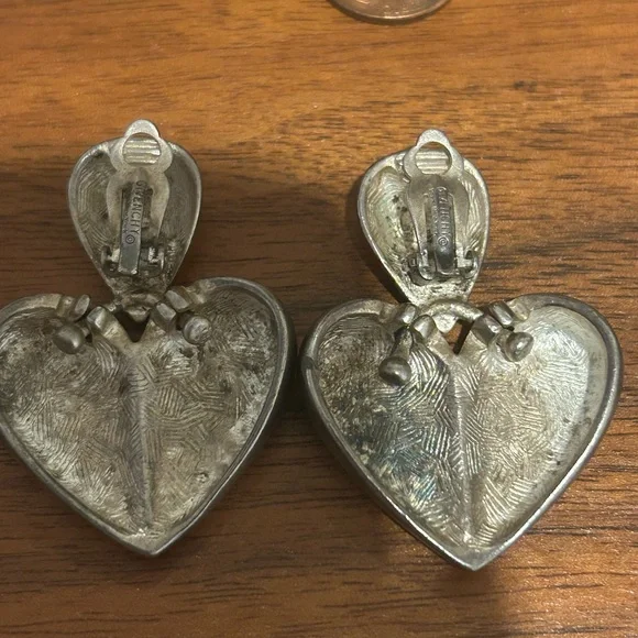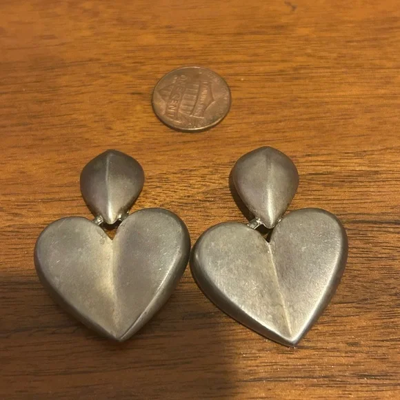 Vintage Givenchy Silvertone clip on Heart earrings