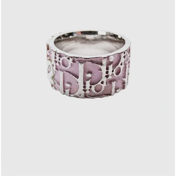 VINTAGE DIOR Pink Iconic Trotter Ring Monogram Silver Ring Size US 6 EU 52 Authentic. Vintage Dior Ring Pink with white and silver inscription,Monogram Authentic Excellent condition Size 6 - true to size Paris Hilton era Dior Y2Kno visible flaws.FROM AN EARLY 2000S CHRISTIAN DIOR COLLECTION, THIS INCREDIBLE RING FEATURES SIGNATURE DIOR LOGO THROUGHOUT THE RING. COMPOSED OF GENUINE SILVER AND PINK. RARE AND HARD TO COME BY.